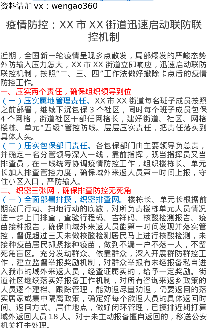 疫情防控:XX市XX街道“二三四”工作法迅速启动联防联控机制