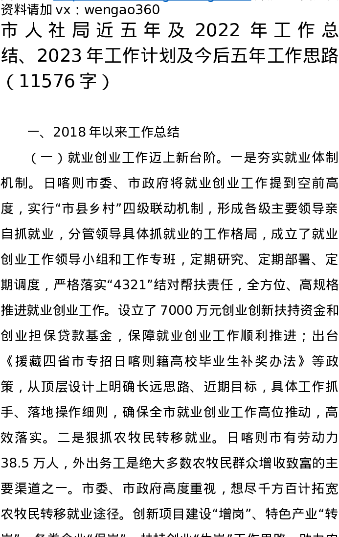 人社局近五年及2022年工作总结、2023年工作计划及今后五年工作思路(1)