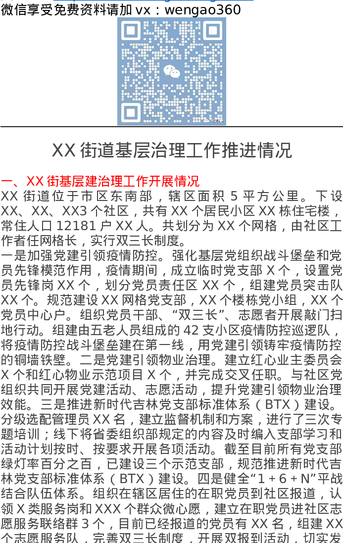 XX街道基层治理工作推进情况