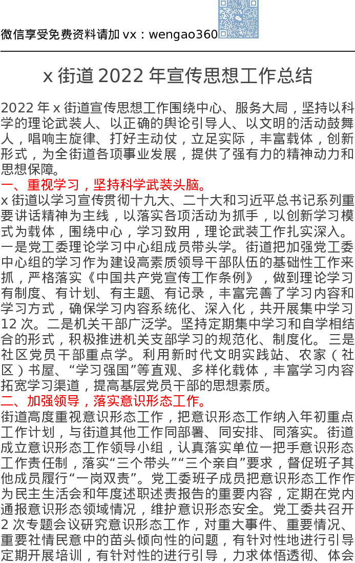 x街道2022年宣传思想工作总结