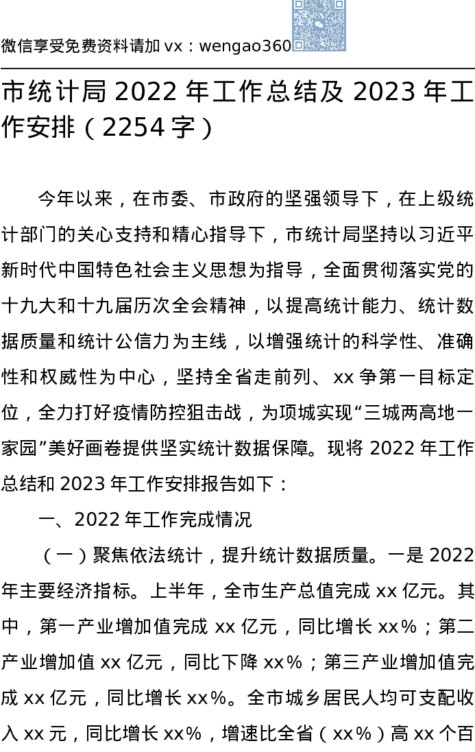 市统计局2022年工作总结及2023年工作安排(1)