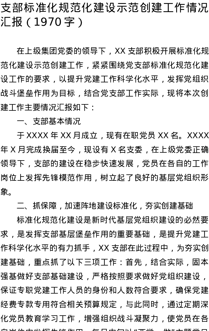 支部标准化规范化建设示范创建工作情况汇报(1)