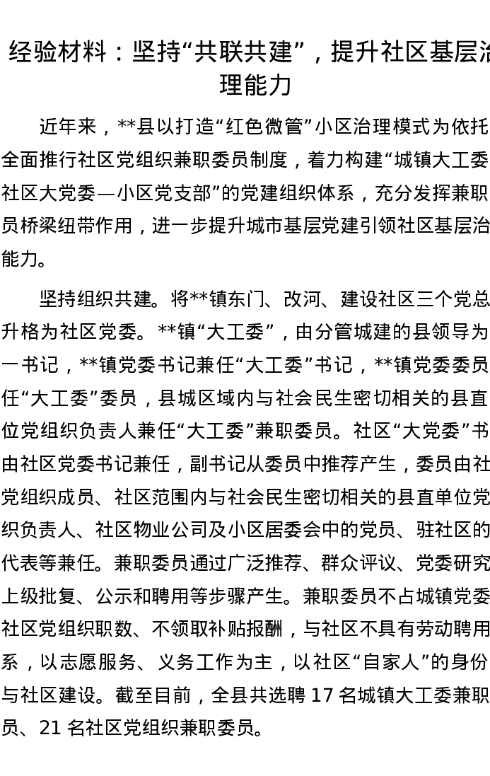 20221027经验材料:坚持“共联共建”,提升社区基层治理能力
