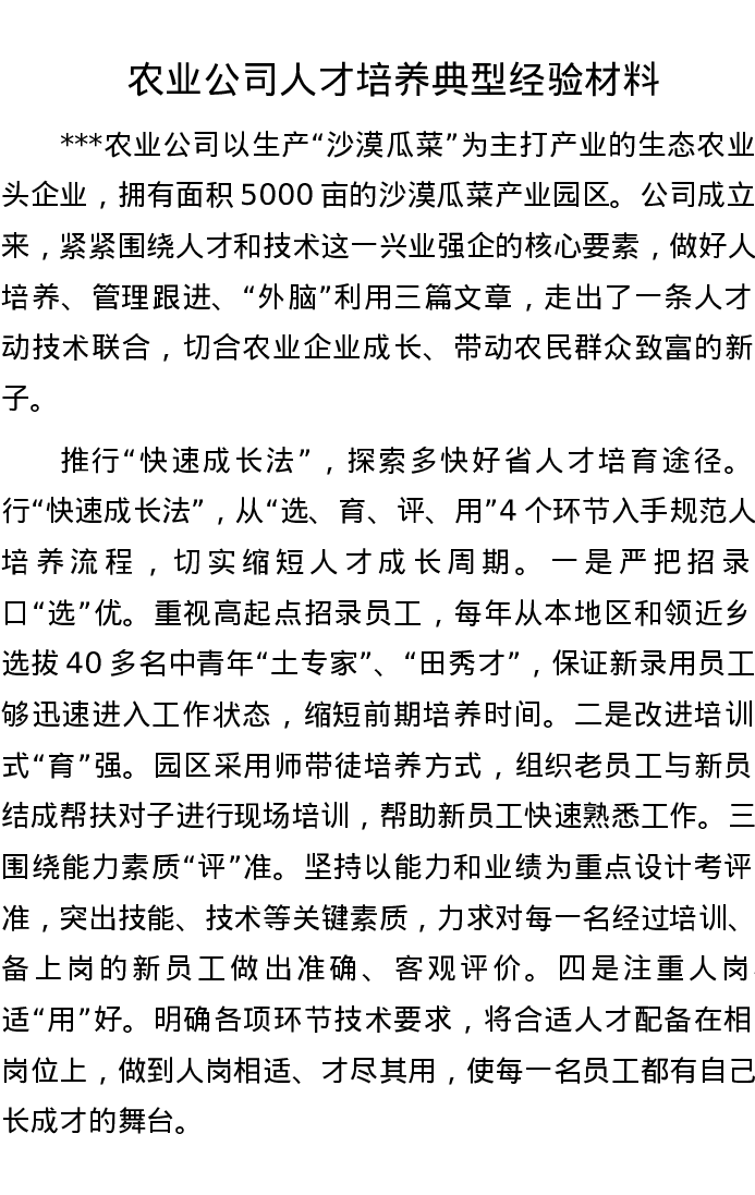 20221028农业公司人才培养典型经验材料