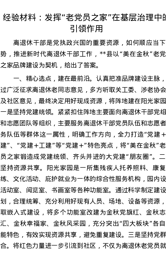 20221028经验材料:发挥“老党员之家”在基层治理中的引领作用