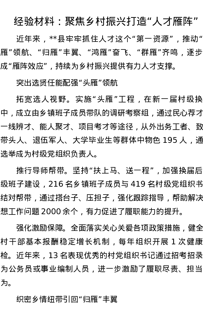 20221030经验材料:聚焦乡村振兴 打造“人才雁阵”