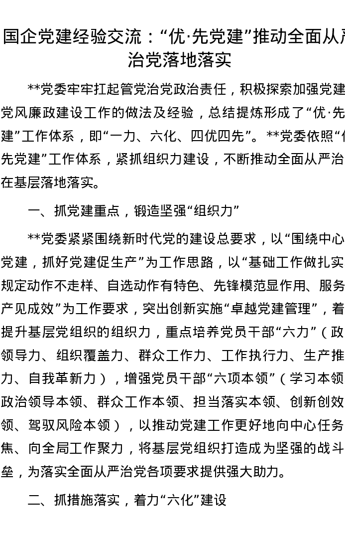 20221102国企党建经验交流:“优·先党建”推动全面从严治党落地落实