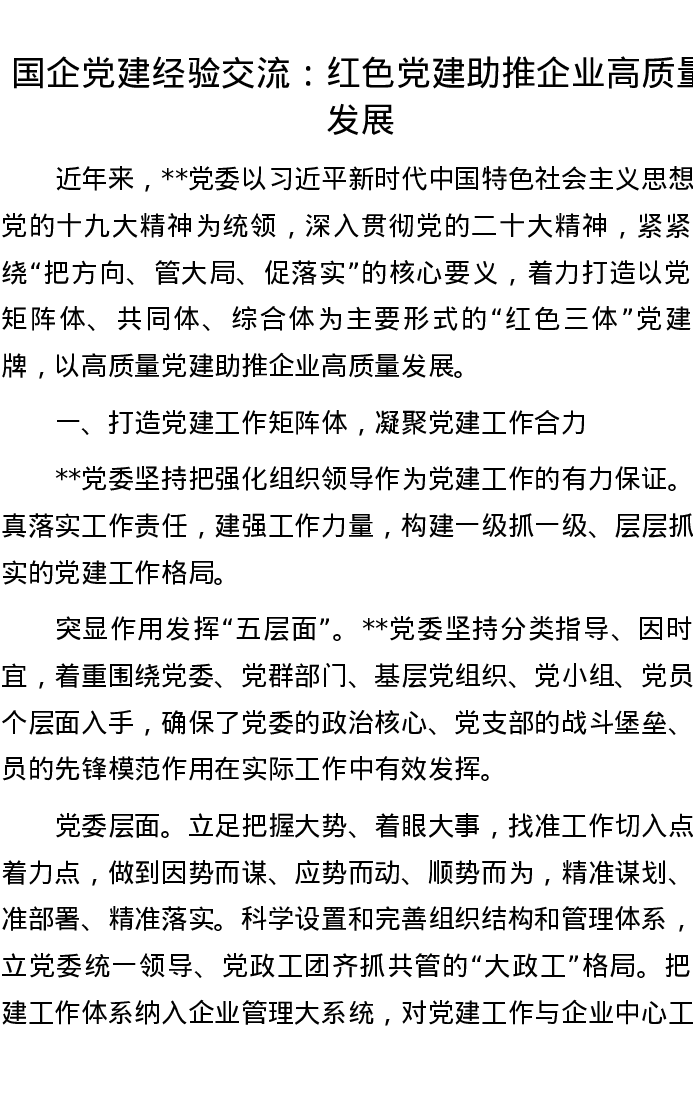 20221102国企党建经验交流:红色党建助推企业高质量发展