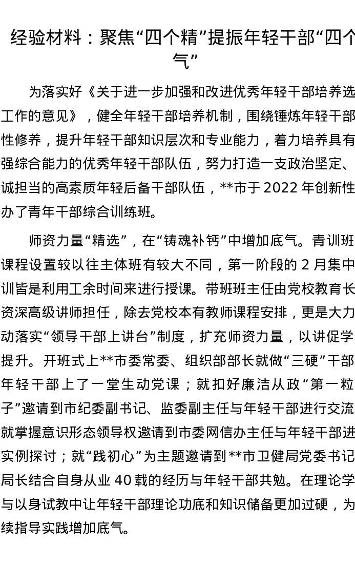20221107经验材料:聚焦“四个精”提振年轻干部“四个气”