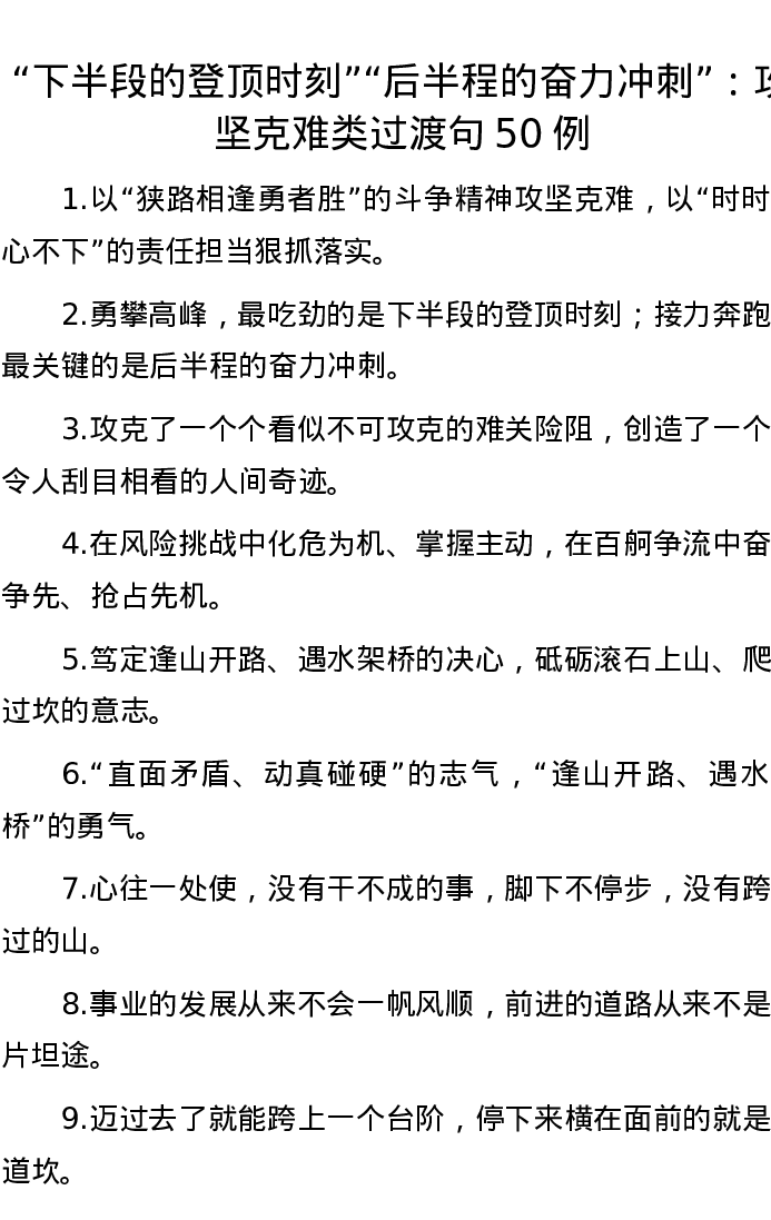 20221028【写作素材】“下半段的登顶时刻”“后半程的奋力冲刺”:攻坚克难类过渡句50例