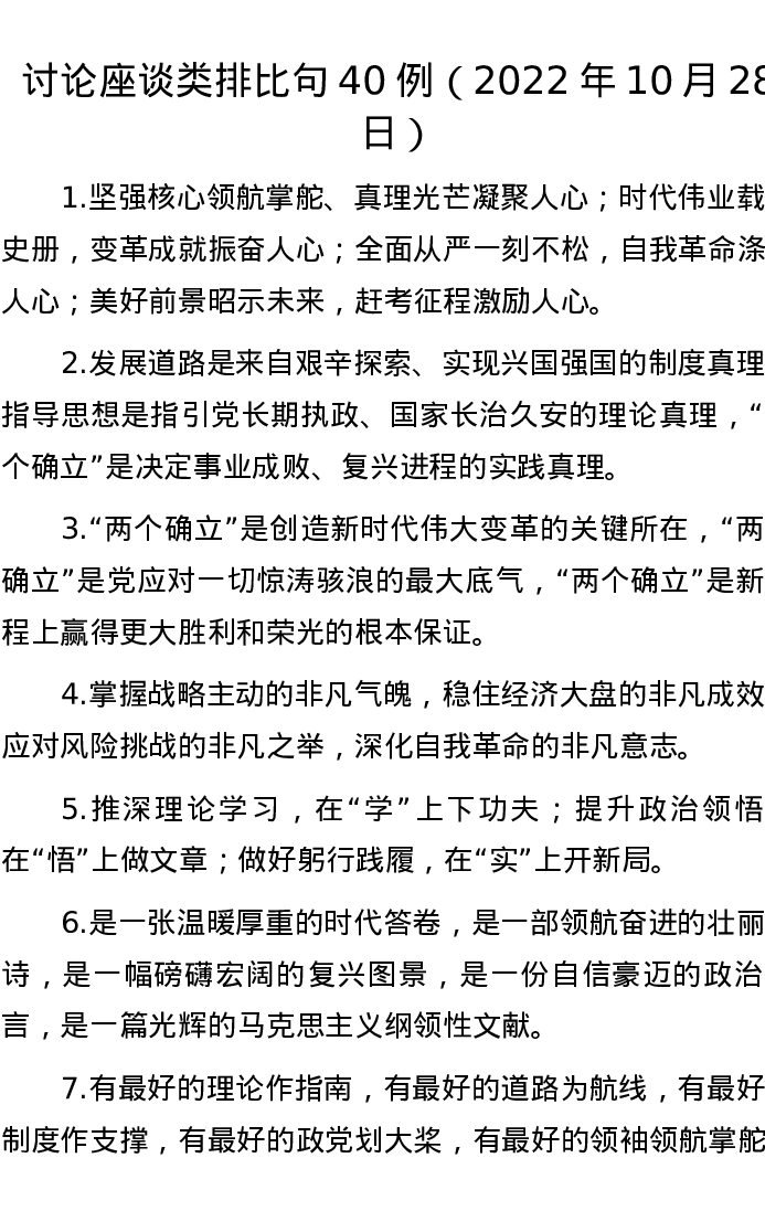 20221028【写作素材】讨论座谈类排比句40例(2022年10月28日)