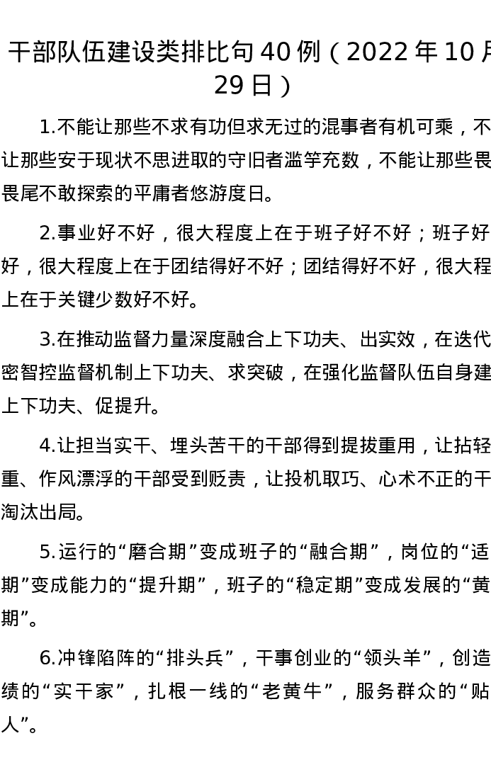 20221029【写作素材】干部队伍建设类排比句40例(2022年10月29日)
