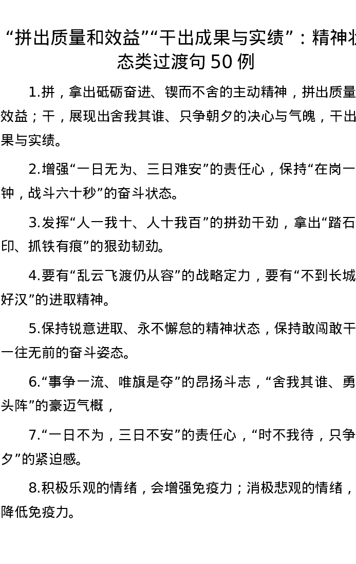 20221031【写作素材】“拼出质量和效益”“干出成果与实绩”:精神状态类过渡句50例