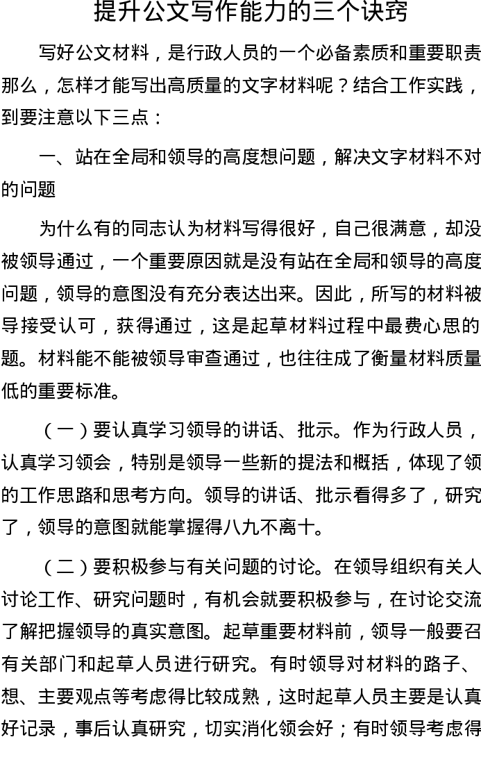 20221101【写作技巧】提升公文写作能力的三个诀窍