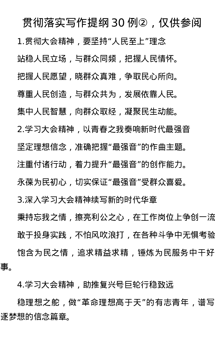 20221101【写作素材】贯彻落实写作提纲30例②,仅供参阅