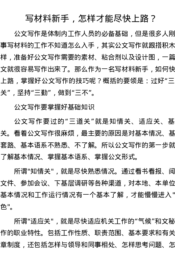 20221103【写作技巧】写材料新手,怎样才能尽快上路?
