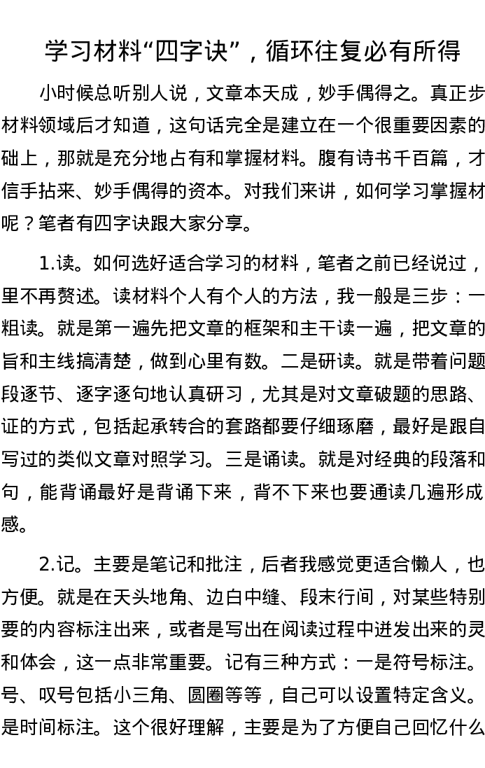 20221108【写作技巧】学习材料“四字诀”,循环往复必有所得