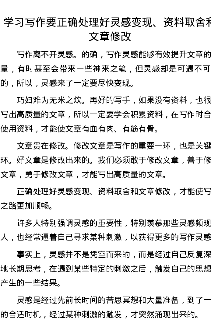 20221109【写作技巧】学习写作要正确处理好灵感变现、资料取舍和文章修改
