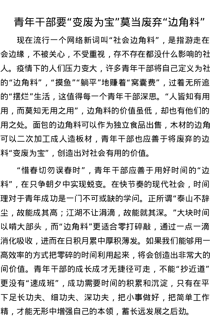 20221109评论文章 青年干部要“变废为宝”莫当废弃“边角料”