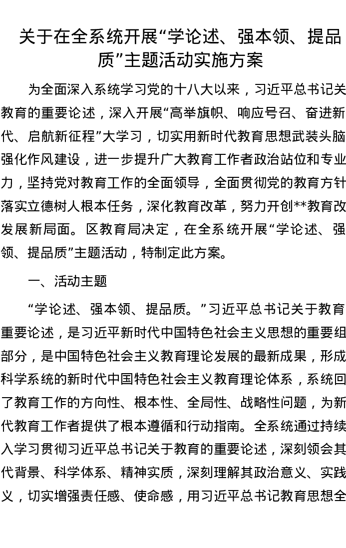 20221028关于在全系统开展“学论述、强本领、提品质”主题活动实施方案