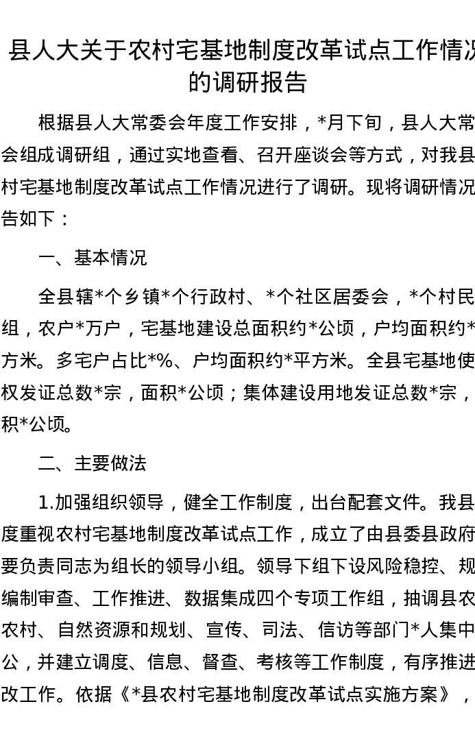 20221028县人大关于农村宅基地制度改革试点工作情况的调研报告