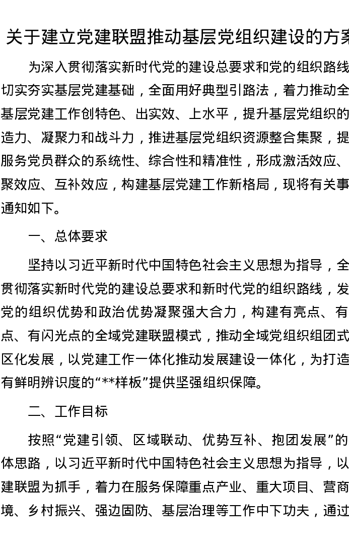 20221029关于建立党建联盟推动基层党组织建设的方案