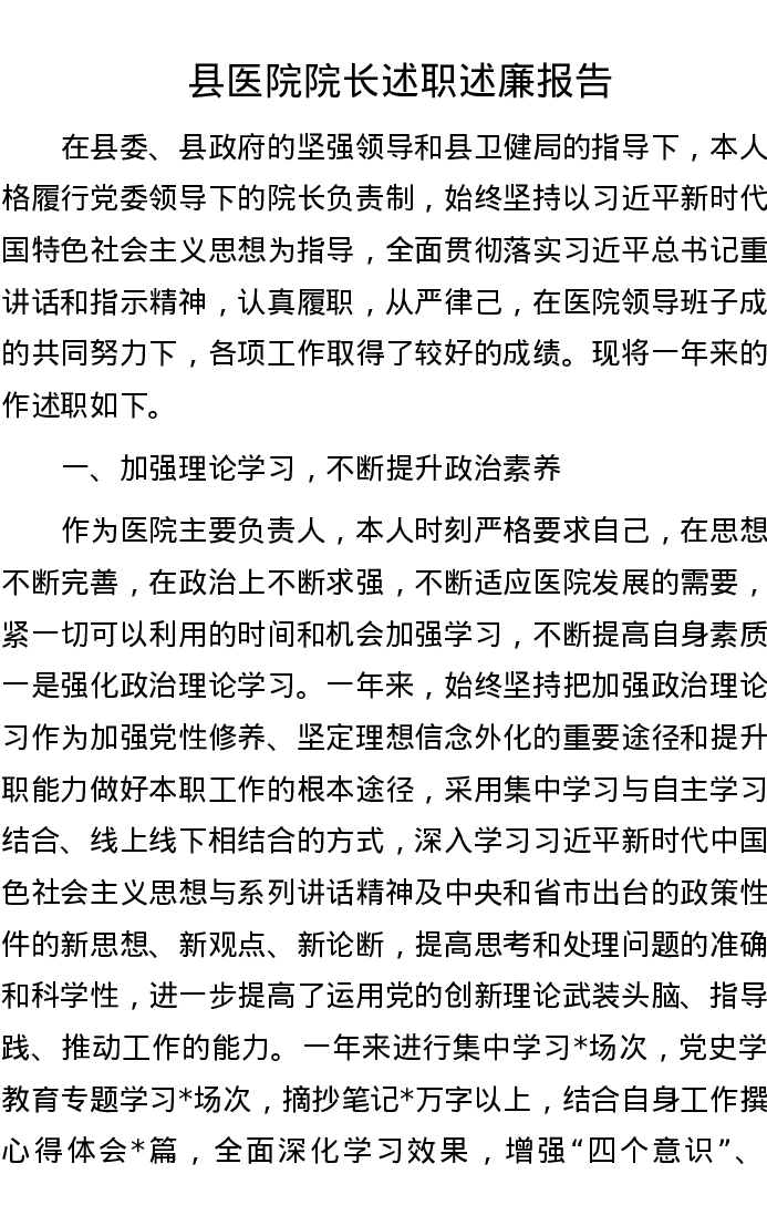 20221107县医院院长述职述廉报告