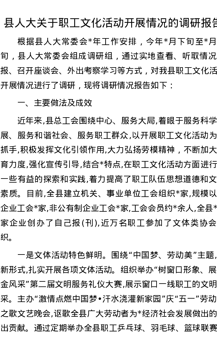 20221027县人大关于职工文化活动开展情况的调研报告