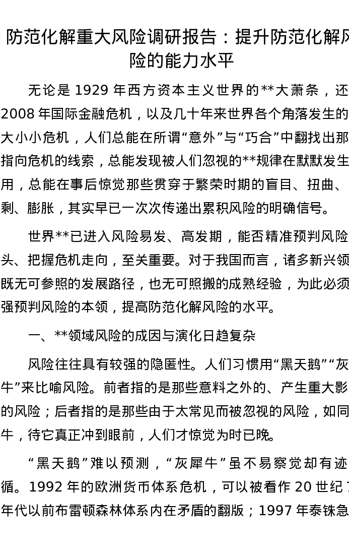 20221104防范化解重大风险调研报告:提升防范化解风险的能力水平