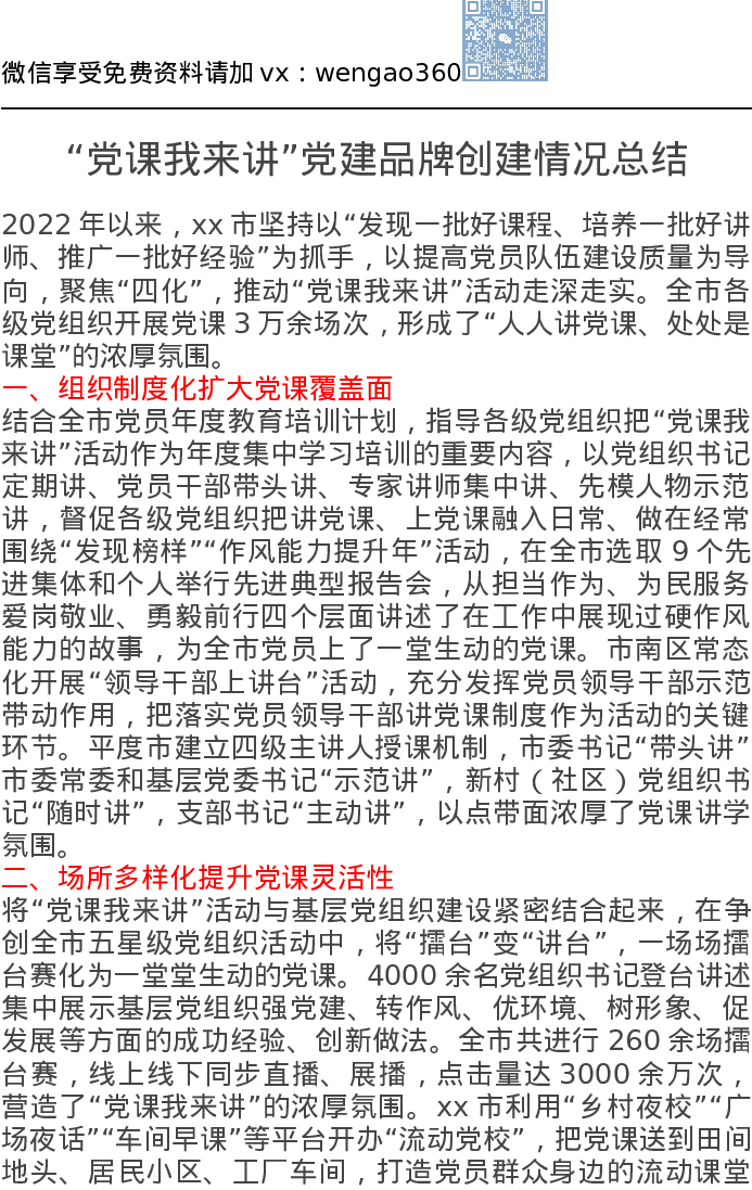 “党课我来讲”党建品牌创建情况总结
