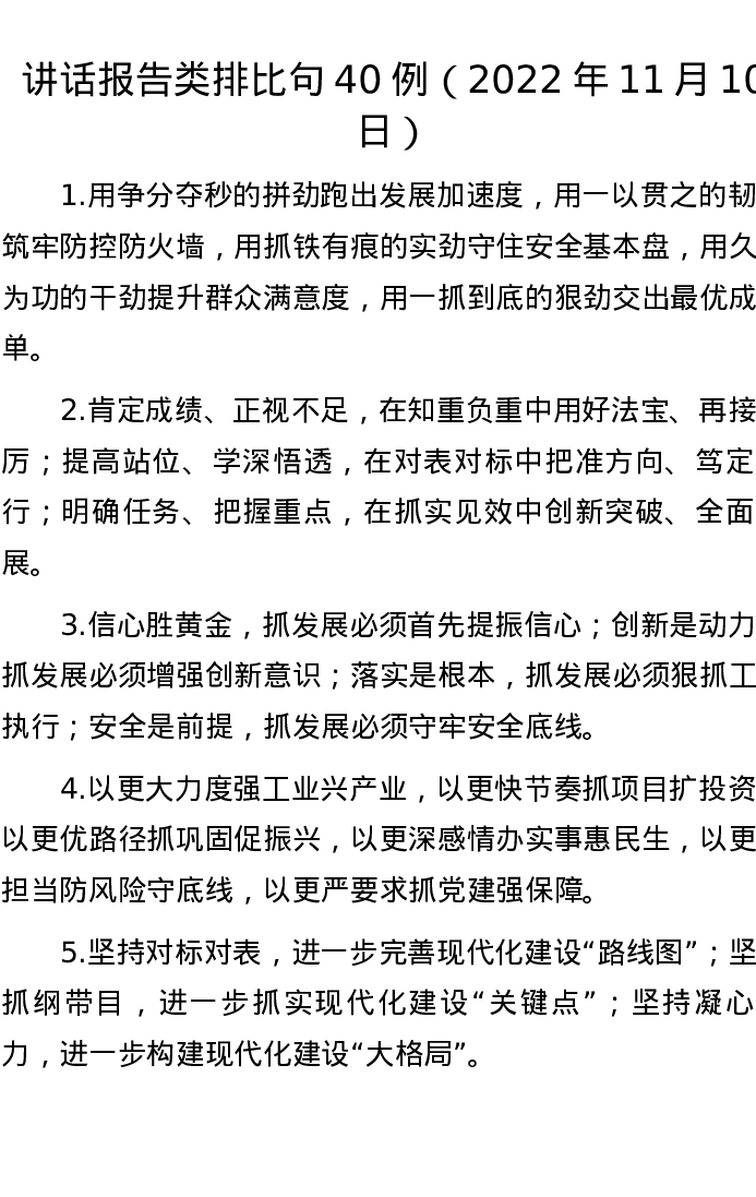 20221110【写作素材】讲话报告类排比句40例(2022年11月10日)