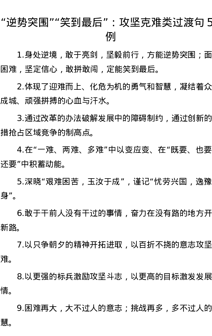 20221111【写作素材】“逆势突围”“笑到最后”:攻坚克难类过渡句50例