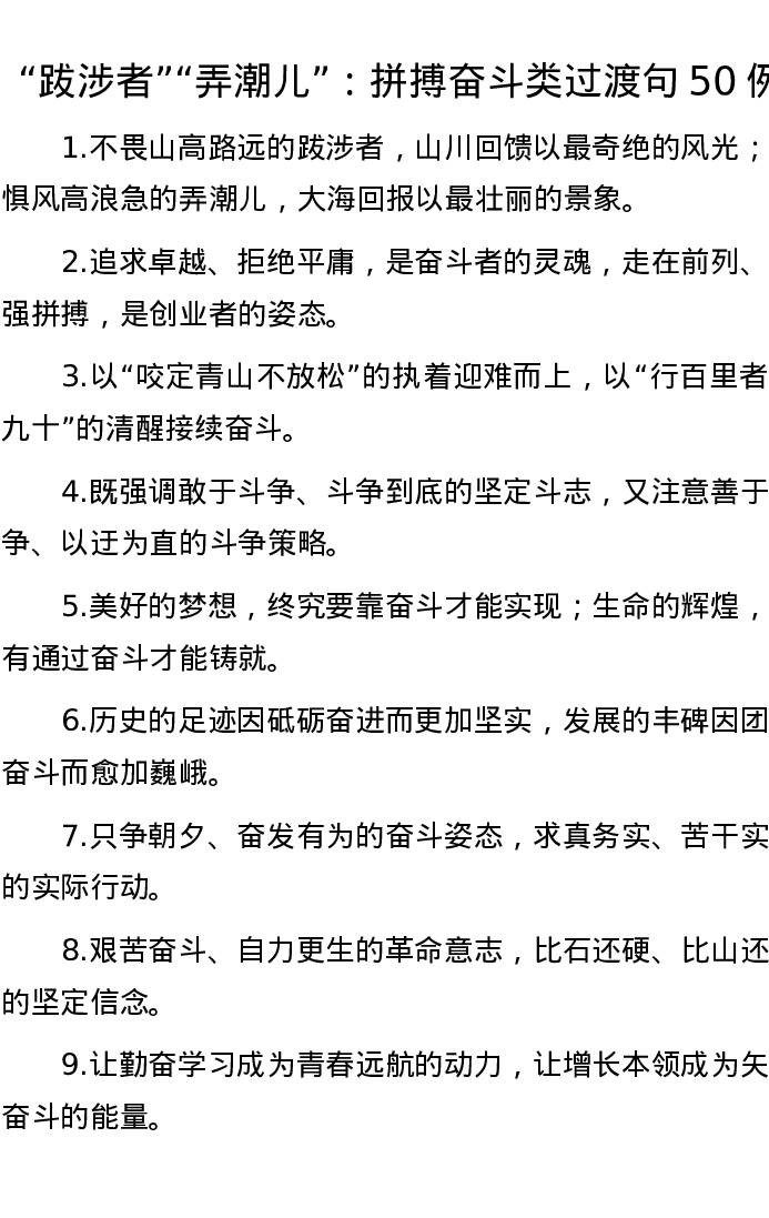 20221112【写作素材】“跋涉者”“弄潮儿”:拼搏奋斗类过渡句50例