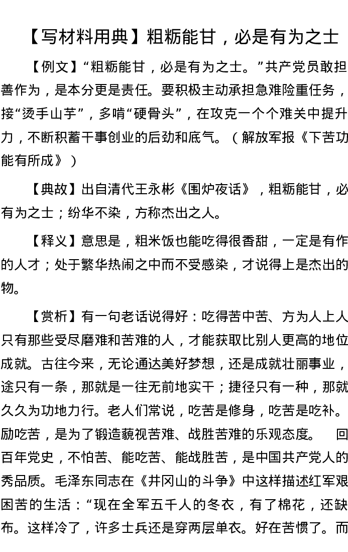 20221112【写作素材】【写材料用典】粗粝能甘,必是有为之士