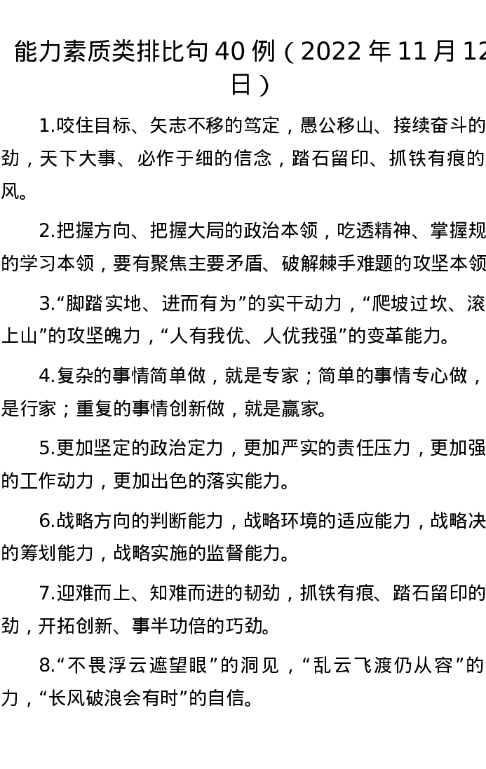 20221112【写作素材】能力素质类排比句40例(2022年11月12日)