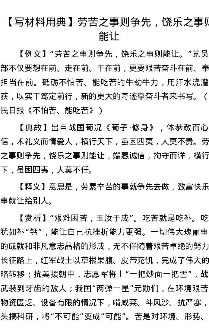 20221113【写作素材】【写材料用典】劳苦之事则争先,饶乐之事则能让