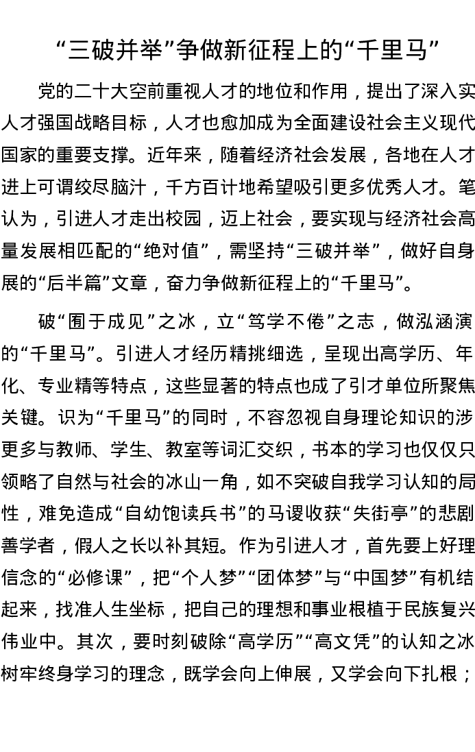 20221110评论文章“三破并举”争做新征程上的“千里马”