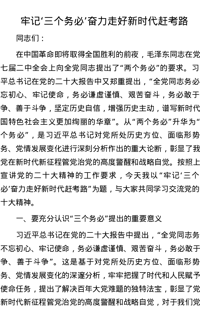 20221111评论文章牢记‘三个务必’ 奋力走好新时代赶考路