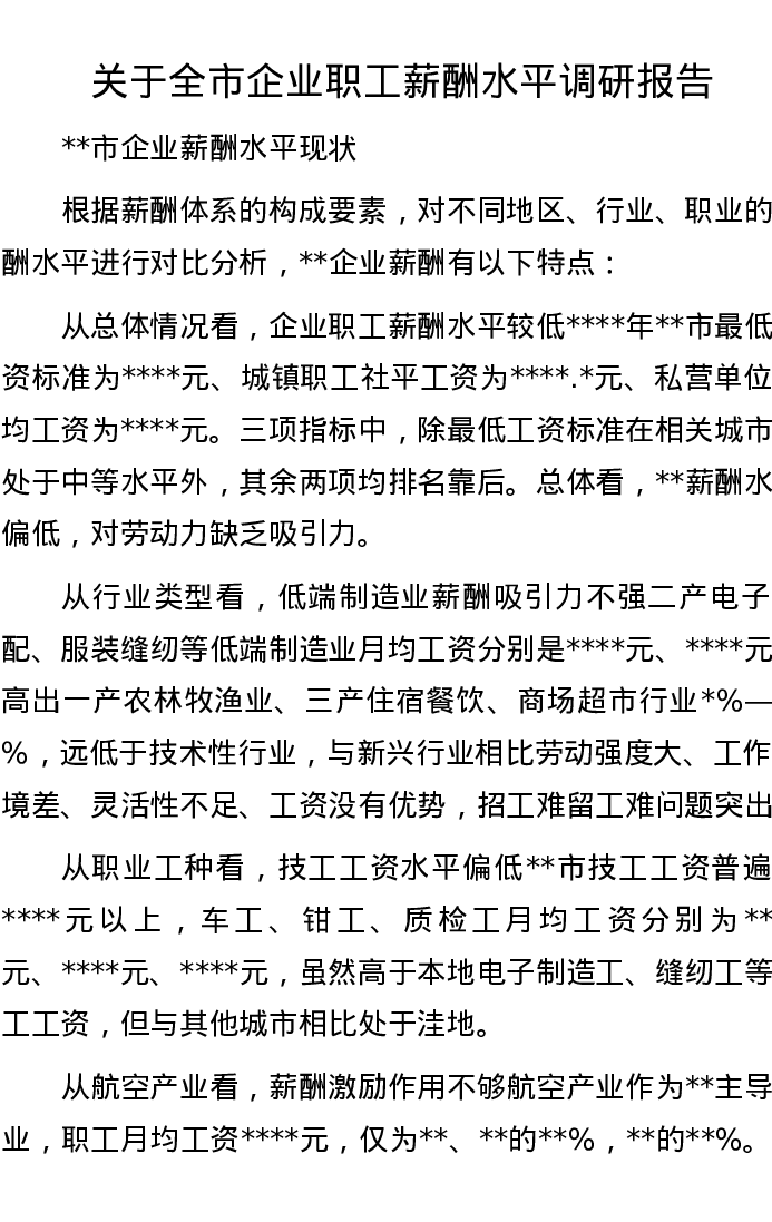 20221112关于全市企业职工薪酬水平调研报告