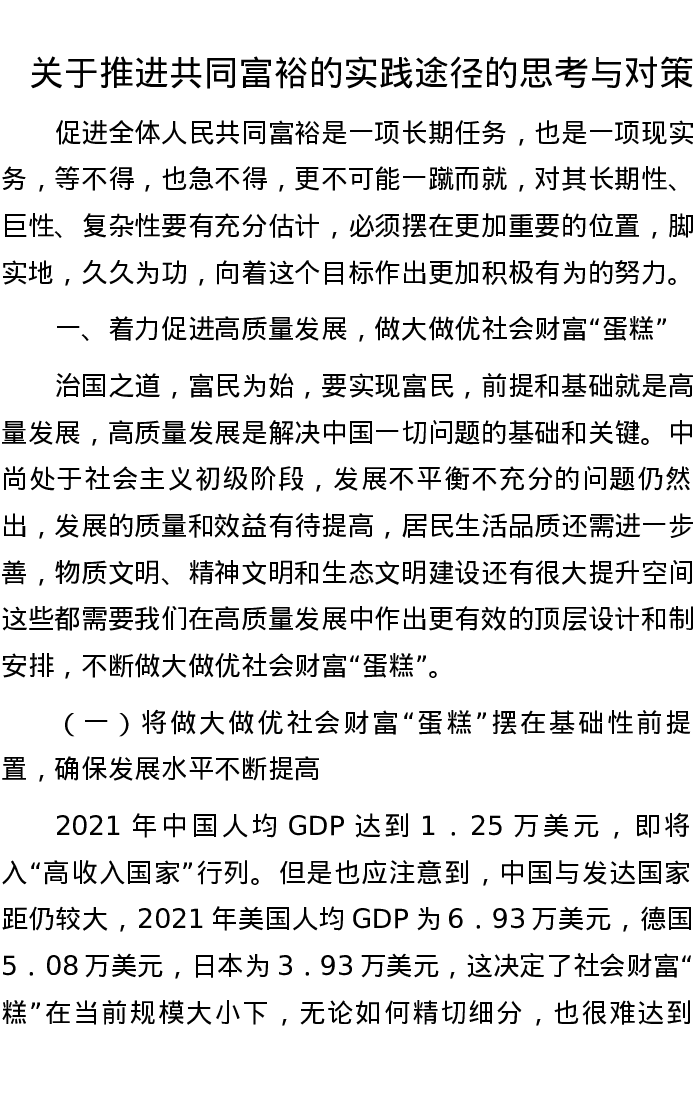 20221112关于推进共同富裕的实践途径的思考与对策