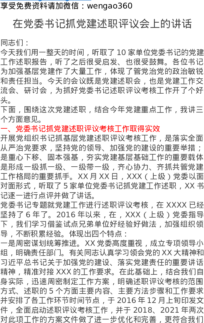在党委书记抓党建述职评议会上的讲话