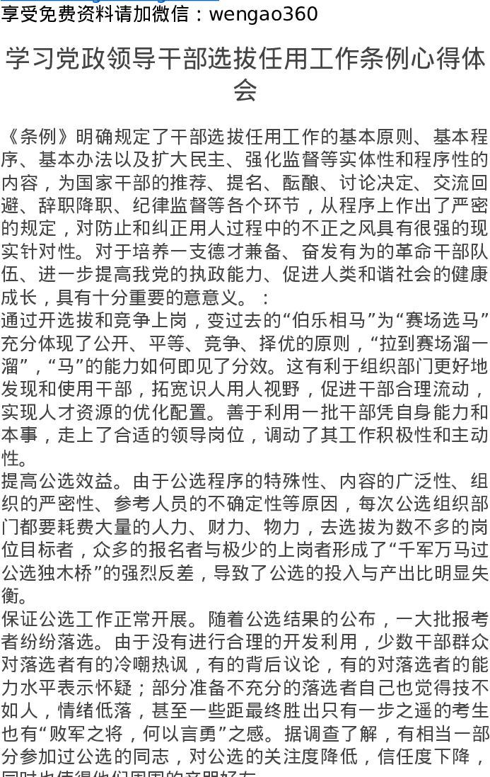 学习党政领导干部选拔任用工作条例心得体会