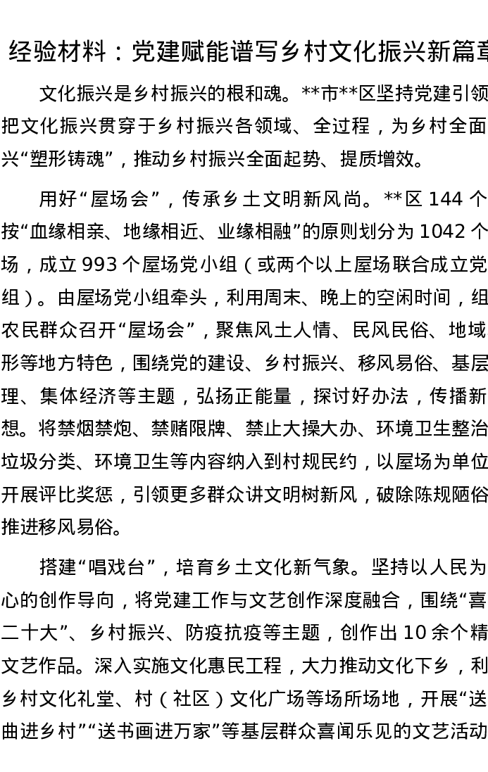 20221115经验材料:党建赋能 谱写乡村文化振兴新篇章
