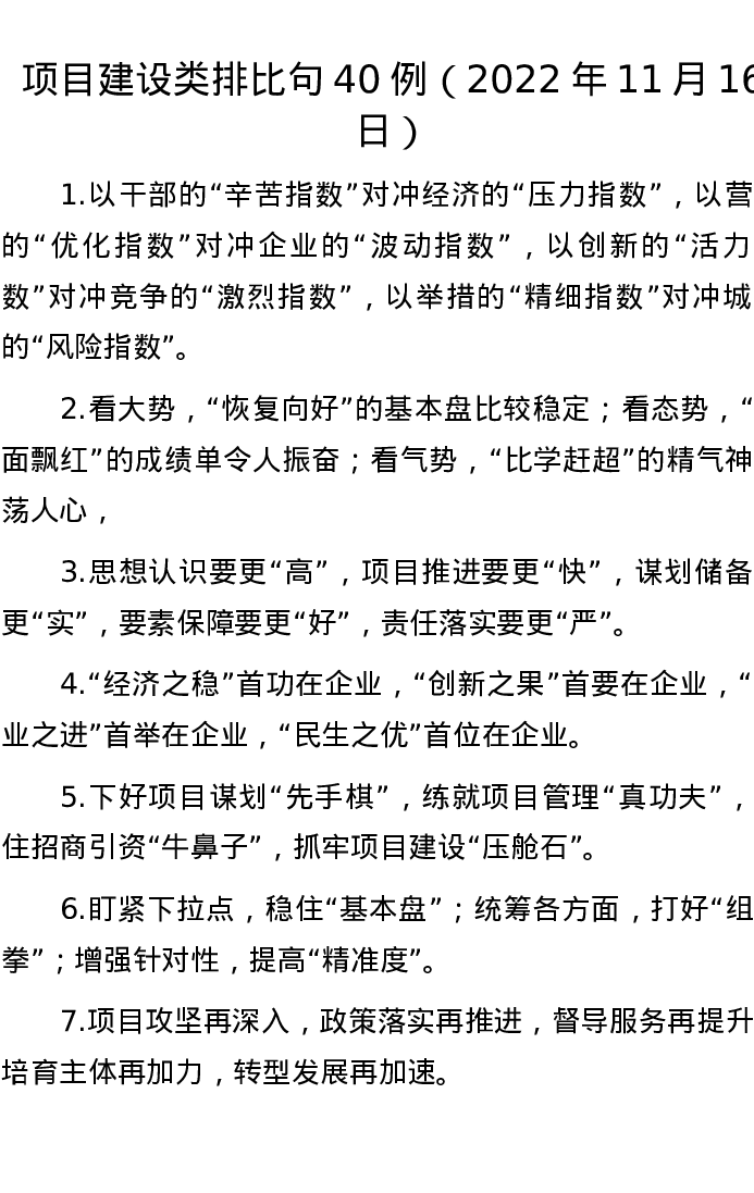 20221116【写作素材】项目建设类排比句40例(2022年11月16日)