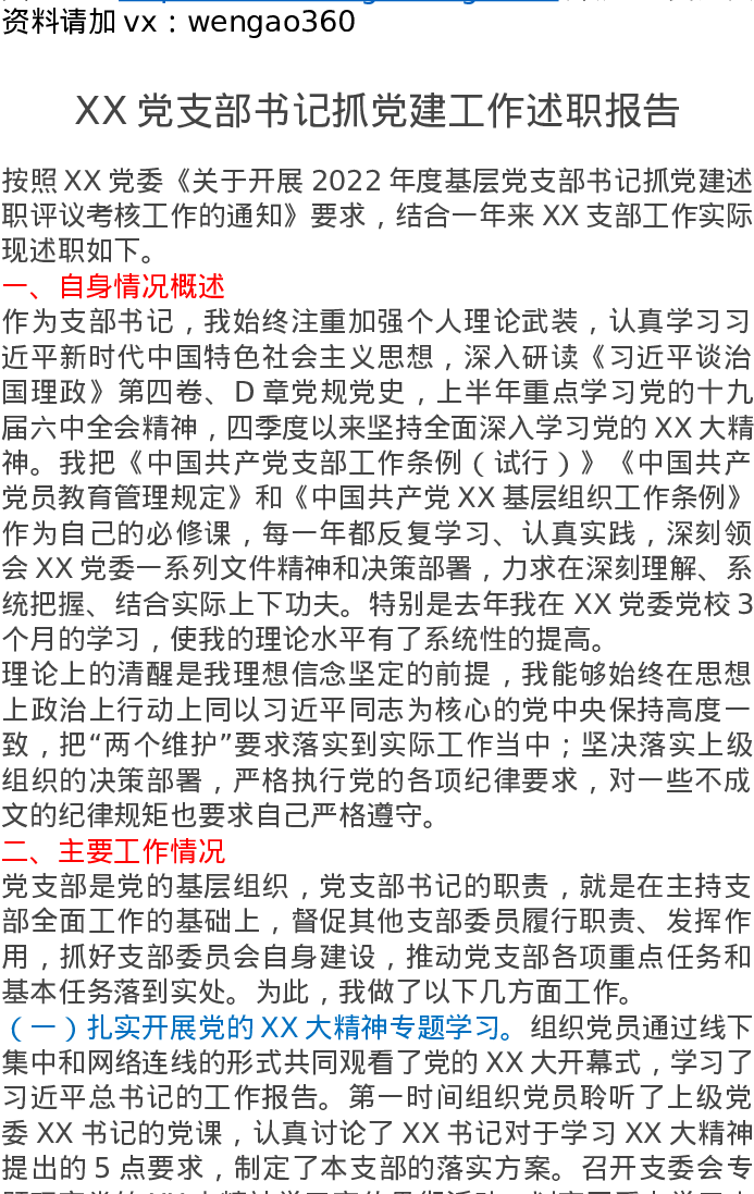 2022XX党支部书记抓党建工作述职报告