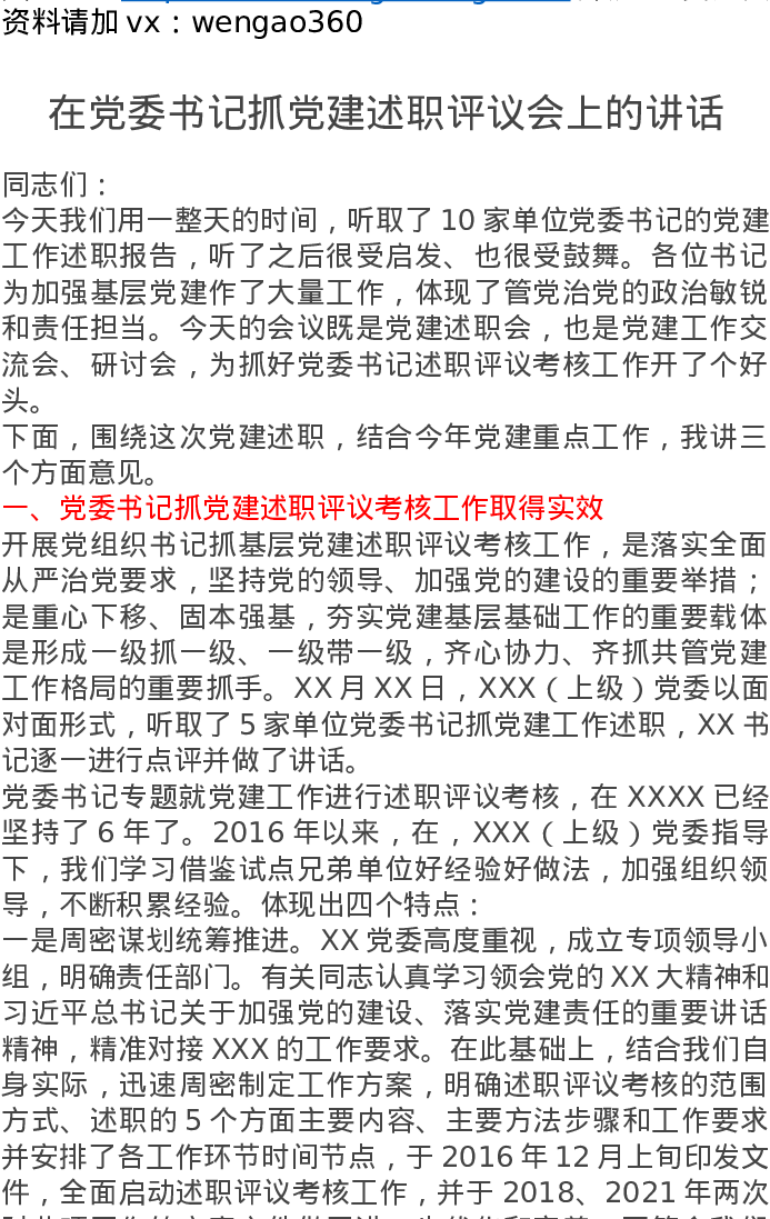 在党委书记抓党建述职评议会上的讲话