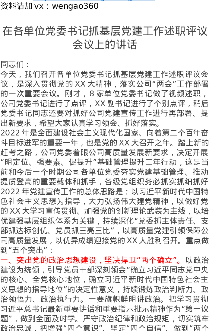 在各单位党委书记抓基层党建工作述职评议会议上的讲话