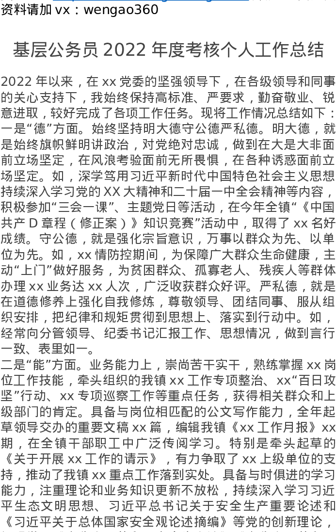 基层公务员2022年度考核个人工作总结