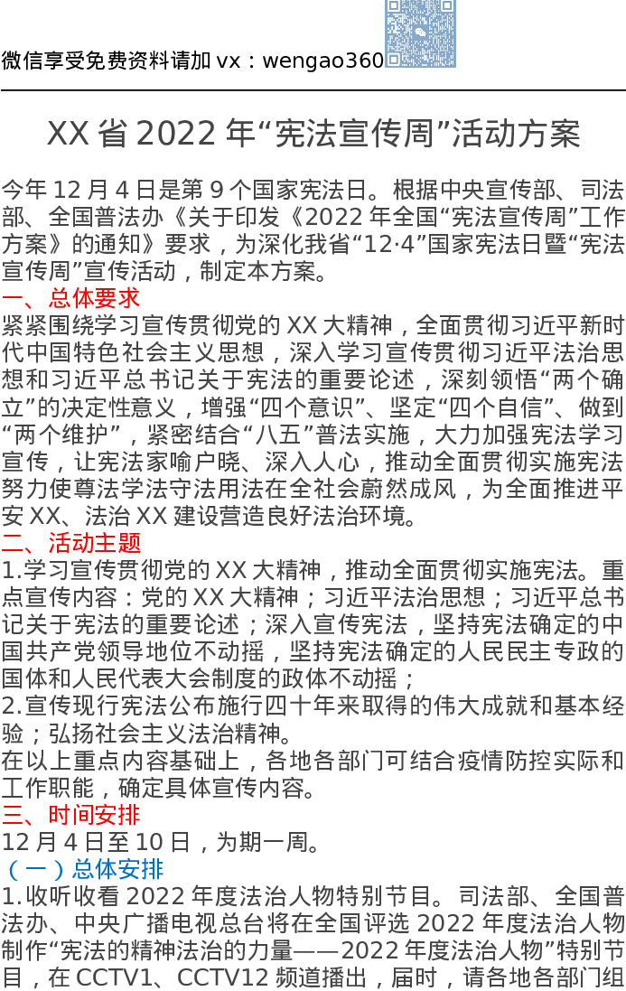 XX省2022年“宪法宣传周”活动方案