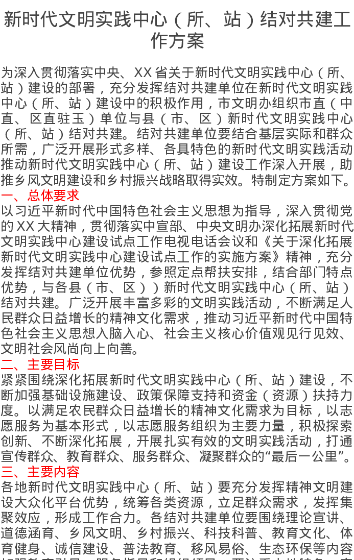 新时代文明实践中心(所、站)结对共建工作方案
